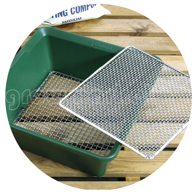 Ένα πολύ πρακτικό βαθύ κόσκινο με 2 ανταλλακτικές σίτες με τρύπα 6 και 12 χιλιοστών.