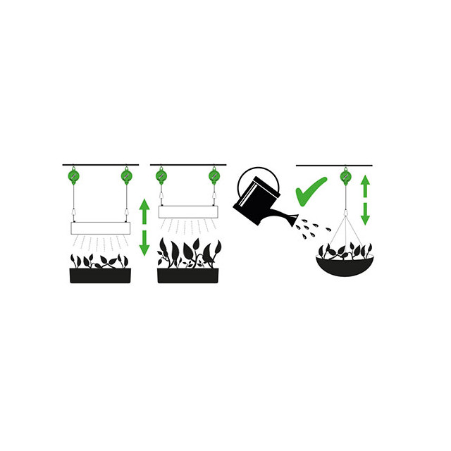 Οι τροχαλίες της Lumii ρυθμίζουν το ύψος των συστημάτων φωτισμού έτσι ώστε τα φυτά να λαμβάνουν το μέγιστο φώς σε ολα τα στάδια ανάπτυξης τους.
